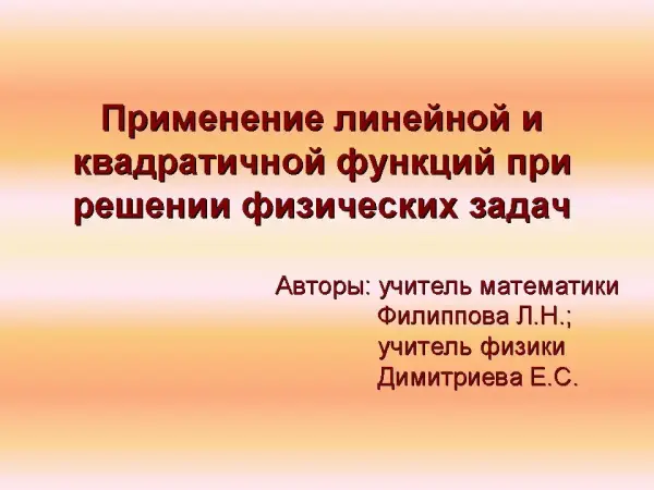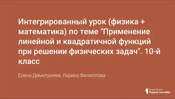 Интегрированный урок (физика + математика) по теме "Применение линейной и квадратичной функций при решении физических задач". 10-й класс