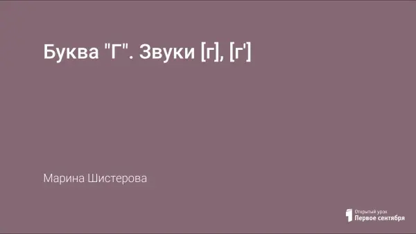 Цель урока: формировать умение характеризовать звуки [г], [г,] и навык чтения слов с изученной буквой; закреплять знания о родственных словах; развивать познавательный интерес учащихся; расширять коммуникативные способности детей.