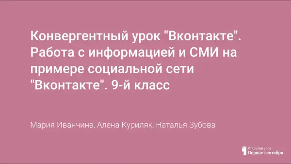 Цель урока: формирование умений анализировать информацию в СМИ на примере социальной сети «Вконтакте».