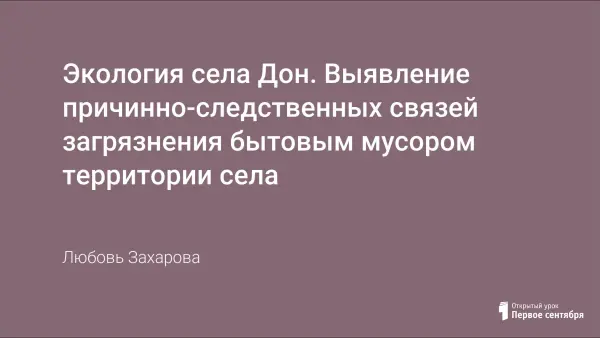 Экология села Дон. Выявление причинно-следственных связей загрязнения бытовым мусором территории села