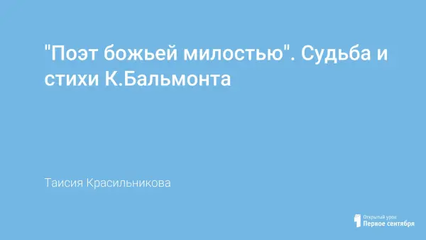 Учащиеся знакомятся с жизнью и творчеством К.Бальмонта. Читают стихотворения поэта. Анализируют смысл, настроение и образный язык лирики поэта.
