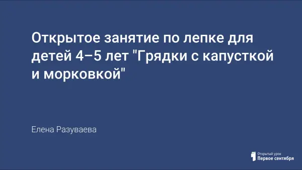 Задачи занятия: учить лепить морковку и капусту, передавая форму и характерные особенности овощей: морковка в форме конуса с кудрявым хвостиком, капуста из пластилиновой ленты, свернутой в вилок (в форме бутона или розана); уточнить представление о хорошо знакомых овощах; вызвать желание лепить по мотивам литературных произведений и включать лепные образы в игры-драматизации; развивать творческое воображение.