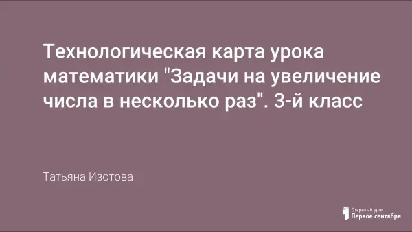 Технологическая карта урока математики "Задачи на увеличение числа в несколько раз". 3-й класс