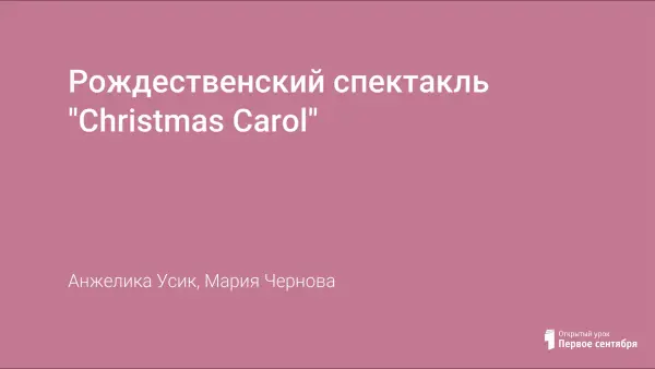 В статье представлен сценарий рождественского спектакля "Christmas Carol" для учащихся средней и старшей школы. В приложении дан текст спектакля с комментариями, фотографиями и программой.