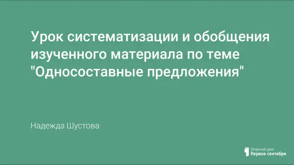 Учащиеся знакомятся с группами односоставных предложений, определяют их виды и морфологические способы выражения главного члена; сравнивают двусоставные предложения и синонимичные им односоставные предложения; сопоставляют разные виды односоставных предложений по их структурным и смысловым особенностям.