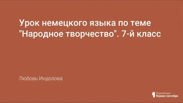 Урок немецкого языка по теме "Народное творчество " обобщает тему "В деревне есть много интересного". Материал по теме "Народное творчество" расширен за счет информации о русских народных ремеслах и селах, в которых эти ремесла зарождались. На уроке закрепляется грамматический материал по теме "Сложное предложение". В конце урока ученики знакомятся с традиционными немецкими ремеслами. Итог урока – тест по пройденному материалу.
