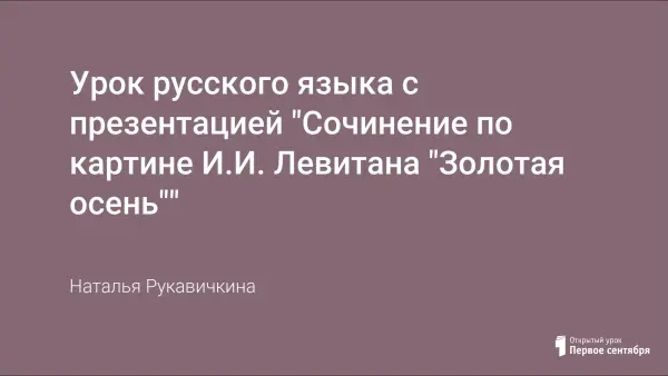 Такой вид работы в курсе «Развитие речи», как сочинение, для учеников начальной школы является сложным, поэтому носит обучающий характер. Сочинение по картине не предусмотрено программой, а ведь искусство в жизни человека играет большую роль. Оно учит видеть и познавать окружающий мир. Цель урока: развить речь учащихся и обогатить их словарный запас; научить детей понимать, любить и ценить произведения искусства.