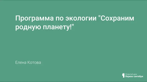 Программа по экологии "Сохраним родную планету!"