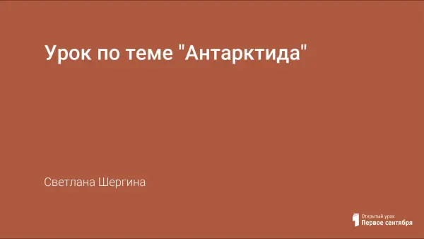 Материал урока раскрывает особенности физико-географического положения материка и его историю исследования, дается представление о правовом статусе Антарктиды, своеобразии природы и роли материка для человечества.