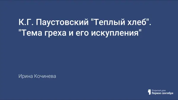 Цель урока – объяснить понятие греха и его искупления на примере сказки К.Г. Паустовского «Теплый хлеб». Учащиеся знакомятся с биографией писателя. Урок проводится в виде комментированного чтения с постановкой проблемных вопросов.