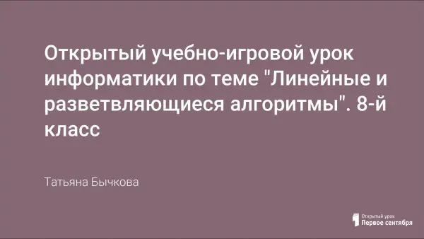 Урок изучает тему «Линейные и разветвляющиеся алгоритмы». Использован язык программирования Паскаль. Проводится в 8-м классе по разделу «Алгоритмы и работа с ними». Детям дается представление об алгоритмах, способах их записи, типах алгоритмов (линейные, разветвляющиеся, циклические, вложенные, вспомогательные).