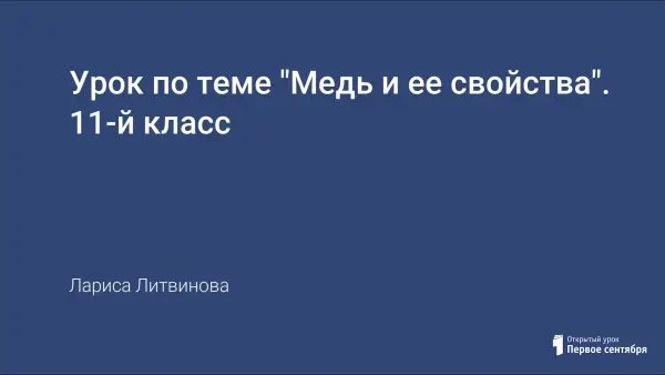Цель урока: формирование на межпредметном уровне знаний о простом веществе, образуемом элементом медью, которая играет важную роль в природе и жизни человека.