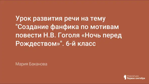 Урок посвящён ознакомлению учащихся с одним из популярных жанров современной литературы – фанфиком. Получив опыт творческой переработки классического произведения, школьники овладевают технологией создания фанфика. Выбор произведения, ставшего основой для индивидуальной интерпретации, определён программой по литературе. Урок целесообразно проводить по итогам изучения повести Н.В. Гоголя «Ночь перед Рождеством» для комплексной проверки полученных знаний и пробуждения культуры «активного читателя».