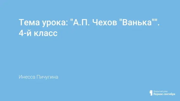 Урок литературного чтения с презентацией знакомят учеников с произведением А.П. Чехова «Ванька». Формирует навык осознанного и выразительного чтения. Учит анализировать текст по вопросам, выражать собственные мысли, рассуждать. Развивает наблюдательность, речь,