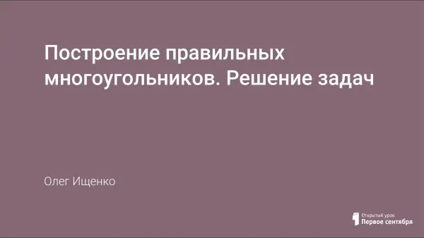 В разработке урока рассмотрены задачи повышенной трудности на доказательство и задачи на построение правильного десятиугольника и правильного пятиугольника.