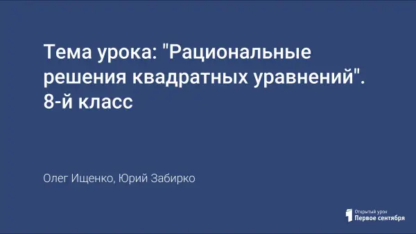 Тема урока: "Рациональные решения квадратных уравнений". 8-й класс