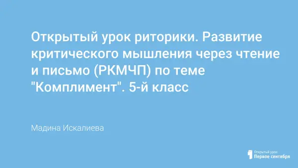 Цели урока: обучение приемам создания комплимента, его употребления и отклика (ответного комплимента); дать установку на правдивую оценку коммуниканта, воспитывать навык умения работать в паре, группе.