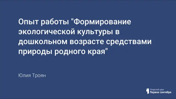Цель дошкольного экологического образования заключена в воспитании начальных форм экологической культуры детей, понимания ими элементарных взаимосвязей в природе, выработке первоначальных практических навыков гуманно-созидательного и эмоционально-чувственного взаимодействия с природными объектами ближайшего окружения.