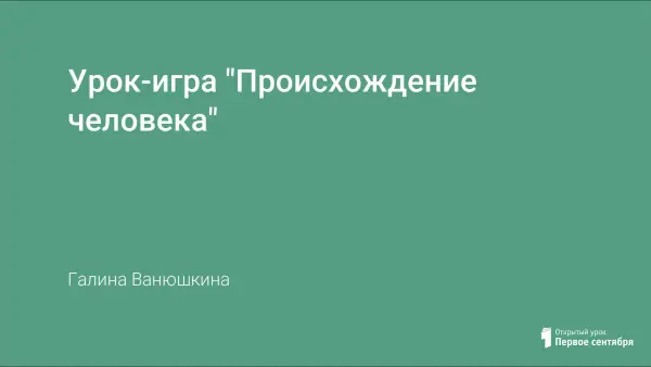 Цель урока: обобщение, систематизация и контроль знаний по вопросу происхождения человека. Использование игровых технологий, оригинальных заданий и задач позволяет снять переутомление учащихся на уроках, побудить к самостоятельной познавательной деятельности. Игра проходит в 8 туров.