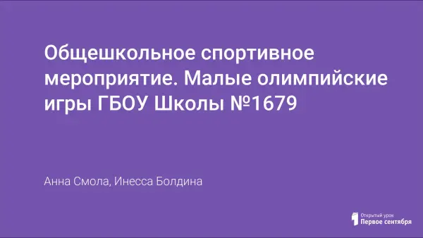 Традиционно, в рамках «Дня здоровья» в нашей школе проводится большое спортивное мероприятие: «Малые олимпийские игры ГБОУ Школы № 1679». Это мероприятие проводится ежегодно и в 2022 году прошли 17 Малые олимпийские игры. Хотим поделиться своим опытом и предлагаем ознакомиться с примерным положением и ходом проведения мероприятия.