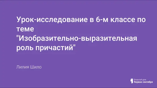 Урок в 6-м классе (обучение ведётся по учебнику С.И. Львовой и В.В. Львова) призван организовать наблюдение за ролью причастий в художественном тексте; совершенствовать умение находить и выделять причастные обороты, анализировать и редактировать текст; повторить стили речи.