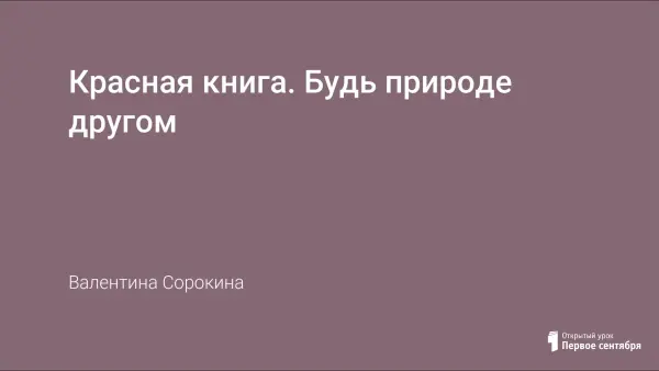 Урок построен на расширении знаний учащихся о растениях и животных, занесенных в Красную книгу. Ученики знакомятся с Красной книгой Москвы, питомником зубров в Приокско-Террасном заповеднике.