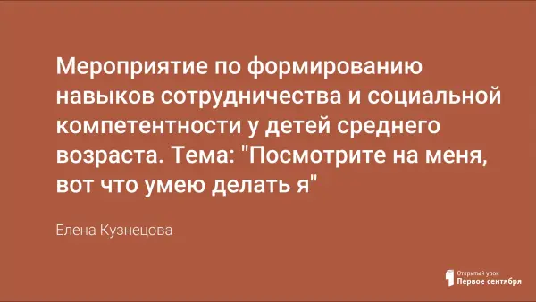 В статье описываются методы формирования навыков сотрудничества и социальной компетентности у детей среднего возраста в ходе образовательной деятельности педагога и детей вне занятия. В образовательном процессе применяется технология развития навыков сотрудничества Л.С. Римашевской, прием игрового взаимодействия И.Ю. Запорожец, ситуативный разговор.