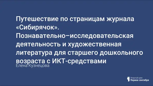 В форме виртуальной встречи детей с Сибирячком (герой детского литературно-художественного журнала «Сибирячок») и его друзьями на страницах электронного журнала закрепляются знания и расширяются представления о животных родного края. Воспитывается бережное отношение к природе, чувство сострадания и умение оказывать помощь, тем, кто нуждается в ней через сказки М. Сергеева.