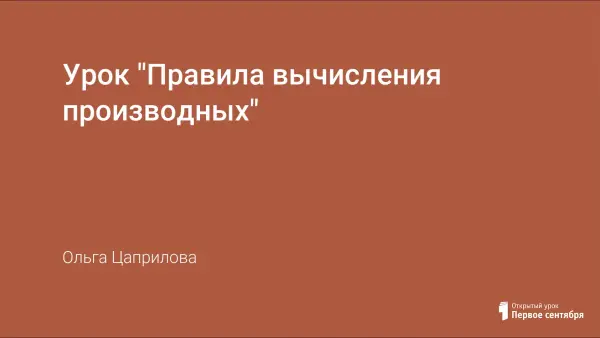 Обобщающий урок систематизирует и закрепляет знания. Отрабатываются навыки техники дифференцирования функции, применения знаний на практике. Рассматриваются некоторые исторические сведения.