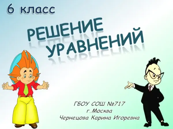 На уроке рассматриваются основные способы решения уравнений. Происходит закрепление основного способа, пройденного до этого – решение уравнений с помощью свойств сложения. Рассматривается новый способ решения уравнений.