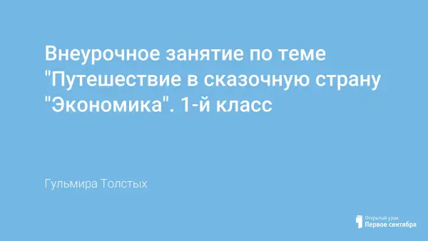 Внеурочное занятие по теме "Путешествие в сказочную страну "Экономика". 1-й класс