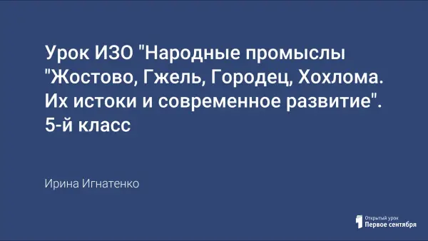 Урок систематизирует и обобщает материалы предыдущих уроков по народным художественным промыслам, развивает умение выполнять орнаментальные композиции на основе народных росписей России, зарисовки кистью и гуашевыми красками, пользуясь приемами мазка (всем ворсом кисти с постепенным поворотом и рисованием концом кисти); закрепляет навыки кистевой росписи.