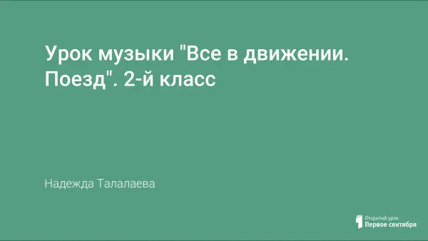 Урок закрепляет "временную" природу музыки, а также неразрывность музыки и движения. Учащиеся в ходе урока постигают изобразительность и выразительность музыки в их единстве на примере образа движущегося поезда. Интонационное творчество поможет детям увидеть смысловую и музыкально-выразительную основу создания образа поезда в музыке.