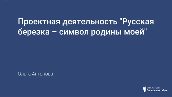 Внеклассное мероприятие с презентацией для 2–4-х классов формирует у учащихся способности к саморазвитию благодаря исследовательской и проектной деятельности. Воспитывает патриотические чувства младших школьников на примере русской березки как символа России; показывает красоту родной природы через стихи, картины, народные песни; подчеркивает значение березы для русского человека.