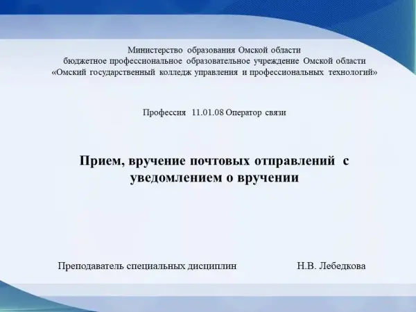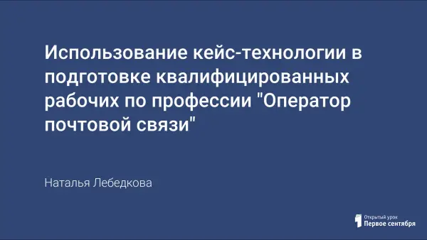 В статье раскрывается применение современных образовательных технологий, а именно кейс-технология при подготовке студентов по профессии 11.01.08 Оператор связи. Представлены задания в виде кейс-метода по ПМ 01 Прием, сортировка, вручение и контроль почтовых отправлений, оформление почтовых операций.