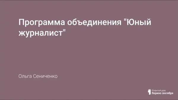 Программа составлена для блока дополнительного образования. Занятия развивают инициативу и творческие способности обучающихся, воспитывают эстетический вкус, усидчивость, целеустремленность, трудолюбие. Программа объединения учит работать коллективно. Юные журналисты изучают историю журналистики, учатся оформлять газеты, печатать на компьютере, рисовать, подбирать материал и компоновать газету.