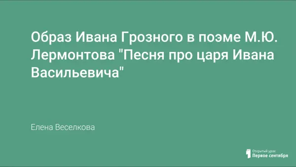 Урок в 7-м классе по программе Коровиной В.Я. характеризует образ Ивана Грозного. Характеристика расширяется благодаря межпредметным связям с историей, МХК. Урок содержит элементы проблемного обучения, строится на эвристической беседе с учащимися. Имеет воспитательную направленность, так как затрагивает проблемы чести и достоинства. Привлекаются биографические сведения из жизни Пушкина, Лермонтова.