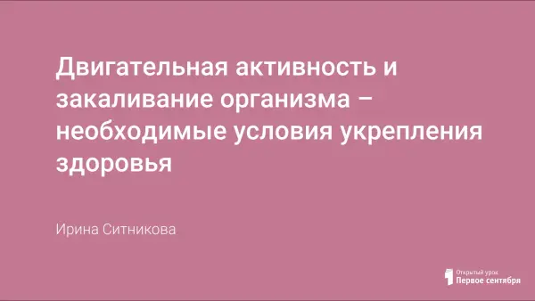 Представлена презентация к уроку по теме "Двигательная активность и закаливание организма – необходимые условия укрепления здоровья".
