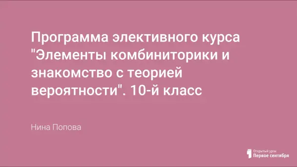 Программа элективного курса "Элементы комбиниторики и знакомство с теорией вероятности". 10-й класс