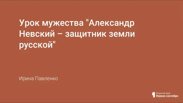 Урок мужества можно провести в 6-м классе. Знакомство учащихся с одной из славных страниц отечественной истории, с русским национальным героем, с его боевыми победами и политическими деяниями, которые были выгодны для укрепления его земли и для него лично. Когда это был бой, он давал бой; когда полезным было соглашение с одним из врагов Руси, он шёл на соглашение.