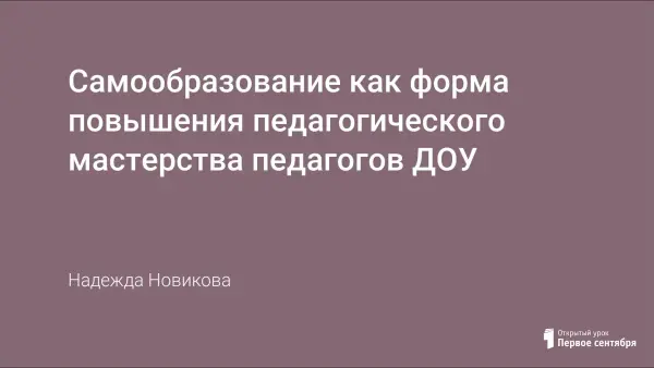 Самообразование как форма повышения педагогического мастерства педагогов ДОУ