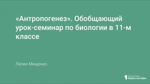 Содержание семинара позволит обобщить, систематизировать и углубить знания учащихся по теме «Антропогенез»; предусматривает выполнение самостоятельных работ репродуктивно-поискового типа, позволяет наиболее полно использовать и развивать интеллектуальные особенности старшеклассников.