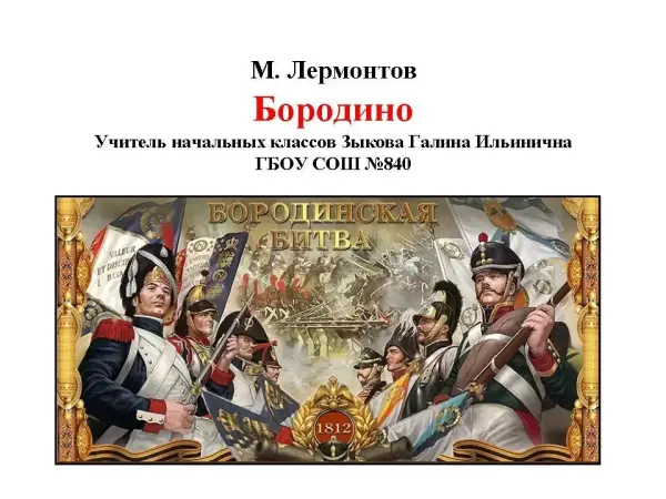 Урок литературного чтения Отечественная война 1812 года в стихотворении М. Лермонтова «Бородино»