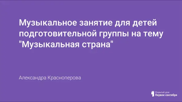 Занятие в простой, доступной, игровой форме продолжает знакомство детей с основами музыкальной грамоты. Дети совершают путешествие в «Музыкальную страну», где закрепляются теоретические знания: названия нот, музыкальные инструменты, что такое мелодия, паузы, ритм.
