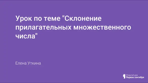 Урок русского языка в 4-м классе знакомит с особенностями склонения имён прилагательных во множественном числе, формирует умение склонять имена прилагательные во множественном числе и употреблять их в речи. На данном уроке развивается умение сравнивать, анализировать грамматические категории; развиваются коммуникативные умения, воспитывается интерес к русскому языку, формируются навыки сотрудничества.