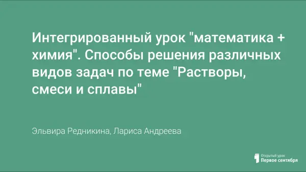 Интегрированный урок "математика + химия". Способы решения различных видов задач по теме "Растворы, смеси и сплавы"