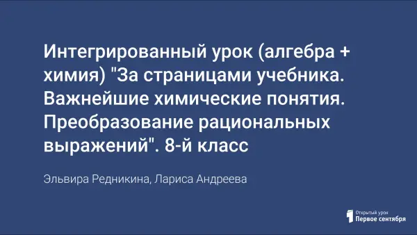 Интегрированный урок (алгебра + химия) "За страницами учебника. Важнейшие химические понятия. Преобразование рациональных выражений". 8-й класс