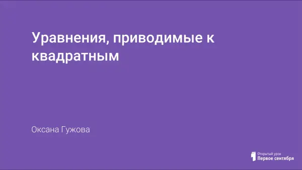 Цели урока: повторить алгоритм решения уравнения способом введения новой переменной и разложения на множители; закрепить умение решать уравнения, приводимые к квадратным; проверить уровень усвоения материала для дальнейшей корректировки.