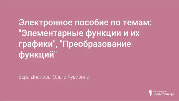 Представляем электронное пособие для 9-го класса, в котором систематизированы сведения о построении и преобразовании графиков функций. Это пособие будет хорошим помощником при объяснении новой темы, повторении материала, подготовки к ГИА.