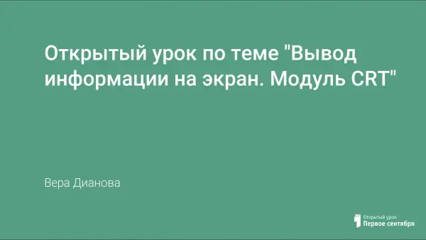 Урок по теме "Текстовый режим экрана. Модуль CRT" очень нравится детям, они с большим интересом изучают эту тему. Мне не нравится, когда ученики, создавая презентации, все как один пользуются шаблонами, не пытаются применить что-нибудь своё. Презентация, которая используется на данном уроке, учит работать не по шаблону, проявлять свою индивидуальность.